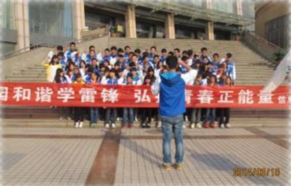 签字活动结束后,信息学院学雷锋志愿者,统一着装在学术会堂门前集合,共同宣誓: