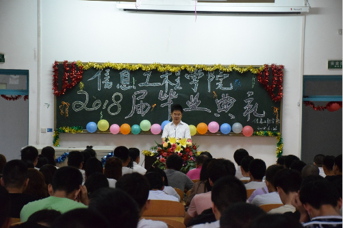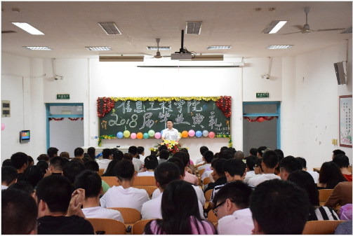 丁洁老师代表全体教师对毕业生表达了美好的祝福。她真诚恳切的叮嘱同学们:要怀感恩之心,在毕业这一刻释怀以往的纠结,坚强面对未来的风雨困苦,永不言弃。信管1501班苏玥、软件1603班曹秦鸣同学分别代表所有毕业生、在校生发言。苏玥同学回顾了三年在校的点点滴滴,情真意切地表达了对学校三年来的辛勤培养和师长关心爱护的感激之情,感慨在大学三年的生活中收获了知识,增长了才干,树立了志向,叮咛在校生要珍惜时光,不负韶华,努力成才。曹秦鸣同学表示会以2018届学长为榜样,刻苦学习,脚踏实地,勤于实践,勇于创新,争取早日成才,用青春和智慧续写辉煌的篇章。