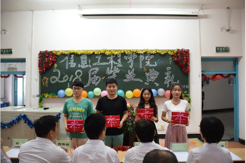 最后,院长何玉辉、副院长殷锋社、教学办主任宋承继、工程训练中心主任吕阿璐、学工办主任何瑾给毕业生代表颁发了毕业证书。