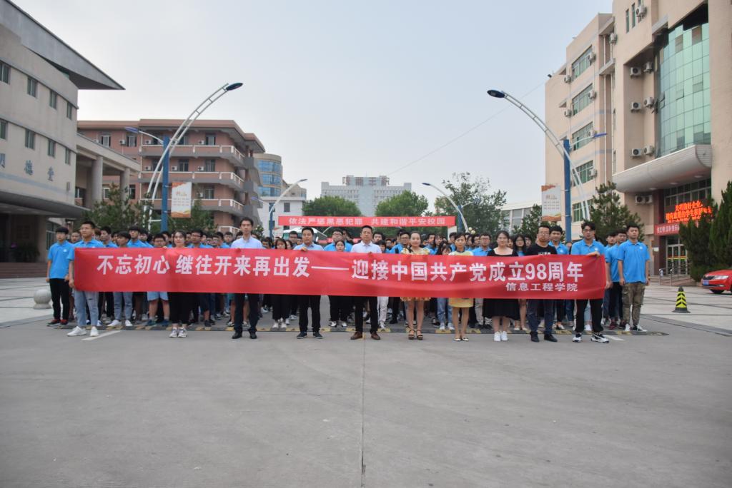 为庆祝建党98周年,进一步激发学生爱校、爱党、爱国的热情,在七一建党节来临之际,6月24日清晨,开元网站登录入口在南门广场开展“国旗下的成长”主题教育活动,本次活动的主题是“不忘初心继往开来再出发——迎接中国共产党成立98周年”。开元网站登录入口党总支书记闫军、学工办全体辅导员、学生预备党员及部分2018级学生共计400余人参加了本次活动。
