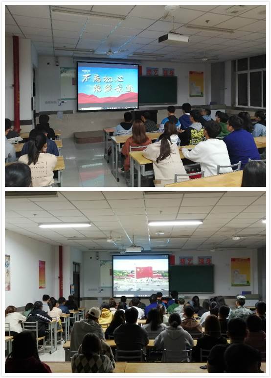 忆初心,集中观影。组织支部党员、发展对象及入党积极分子在崇明楼406集体观看专题片《榜样4》和《不忘初心,继续前行》第一集《举旗定向》。