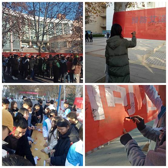 为了积极响应第32个“世界艾滋病日”主题宣传活动,进一步提高大学生对艾滋病的自我防范意识,共同营造全员参与艾滋病防治工作的良好氛围。根据后勤处拟定的“2019年艾滋病宣传月活动方案”,12月9日下午,开元网站登录入口在成才大道东侧开展了“预艾予爱,你我同在”签名活动。