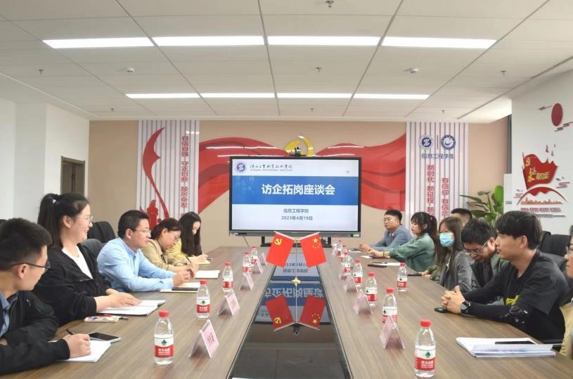 双选会结束后,信息学院组织召开了访企拓岗座谈会。会上,党总支书记闫军向参会企业代表们介绍了信息学院办学基础、专业设置、人才培养等方面情况,各企业代表结合自身公司业务需要、用人需求,对我校人才培养方案提出了宝贵的意见,并反馈了我校学生在企业就业、实习等方面的情况和表现。座谈最后,双方均表示未来将继续加强联系、深化合作,共同为学生成长与发展贡献力量。