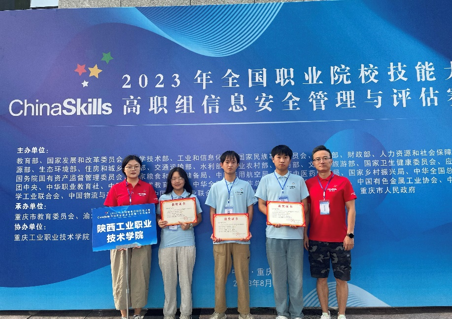 2023年8月20日至21日,2023年全国职业院校技能大赛(高职组)“信息安全管理与评估”赛项在重庆工业职业技术学院举行,来自全国29个省、直辖市、自治区的62个代表队齐聚山城重庆,一展所学,赛出精彩。由我校开元网站登录入口杨鹏和杨丹老师指导的网络2003班豆凯歌、网络2101班董丹丹及网络2101班刘德辉组成的代表队顽强拼搏、团结奋战,最终荣获团体二等奖。