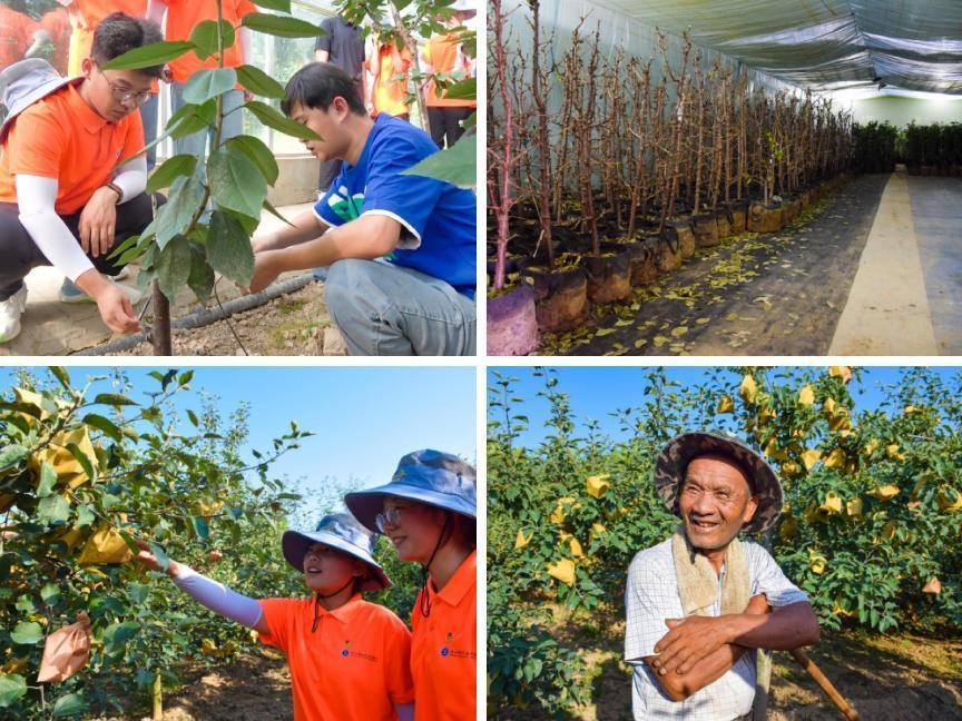 最后,实践团一行来到苹果种植园,学习了解苹果种植过程中施肥、打药、套袋的相关知识。参观途中,碰到了一位已经年近八旬的的农民爷爷,实践团成员主动前去帮助农民爷爷一起完成劳作,也结束了一天的参观学习之旅。