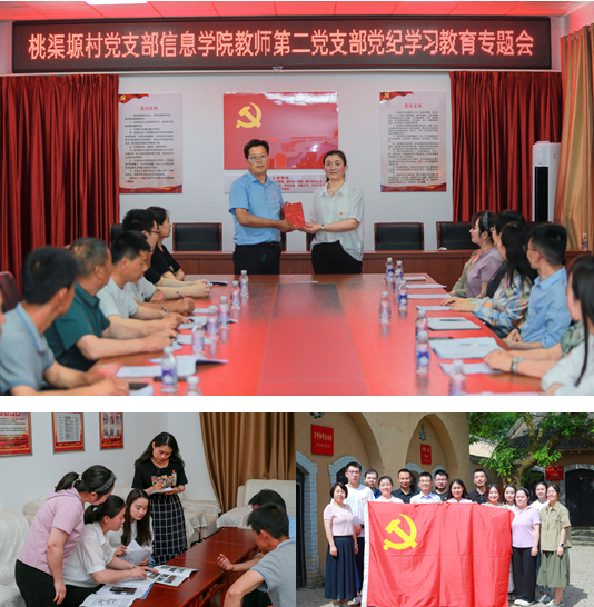 首先,支部书记李俊传达了习近平总书记关于党纪学习教育的重要讲话和重要指示精神,并代表支部向桃渠塬村党支部赠送了《中国共产党纪律处分条例》;随后双方支部委员分别领学《中国共产党纪律处分条例》第一、二章内容,桃渠塬村党支部书记王联峰讲授党课“桃渠塬的红色历史”,教师第二党支部由王蒙蒙、赵润泽两位教师分别分享“美术经典中的党史”微党课。