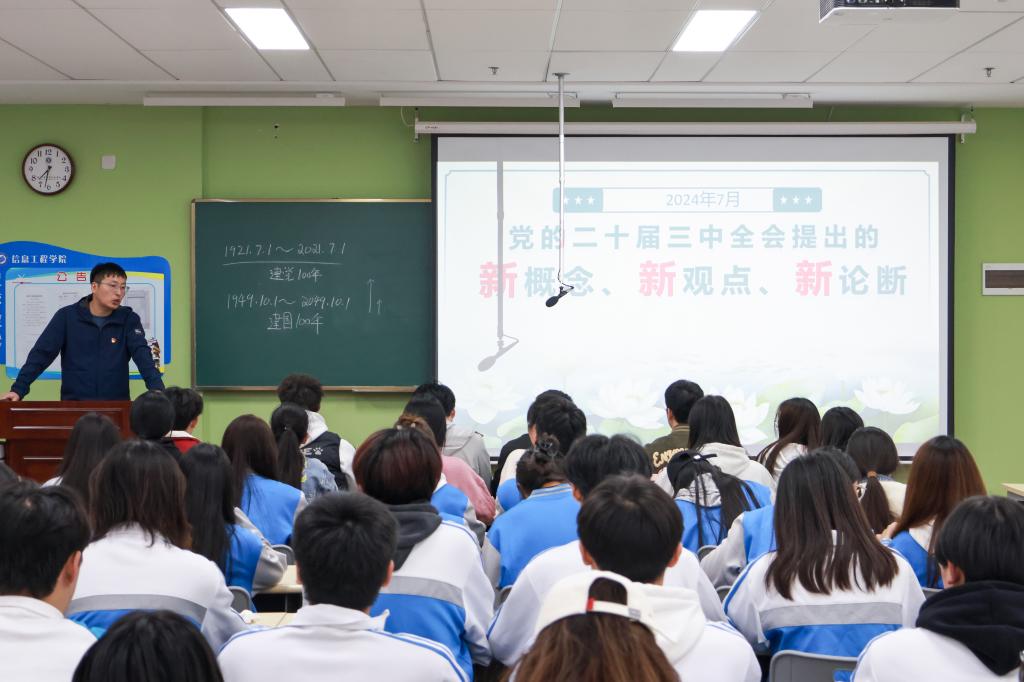 11月6日下午,开元网站登录入口学生第一、第二党支部在崇理C606教室组织全体党员深学细悟党的二十届三中全会精神。开元网站登录入口学生第二支部书记赵松以《深学细悟强本领 务实笃行显担当》为题,为党员、入党积极分子60余人讲授专题党课。