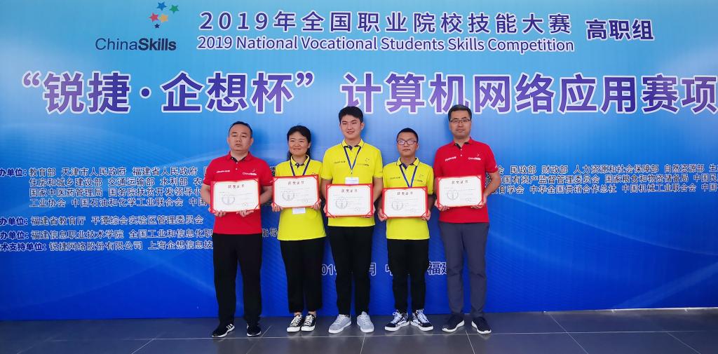 6月15日,2019年全国职业院校技能大赛高职组“计算机网络应用”赛项在福建信息职业技术学院圆满结束,大赛共有来自全国各省、市的113支代表队,共339名选手参加。经过四小时的激烈比拼,由我院开元网站登录入口教师李爱国、李文宇指导的网络1702班杨烁、网络1801班君康和信管1804班段若琳3名同学组成的代表队以总成绩第二名荣获团体一等奖。