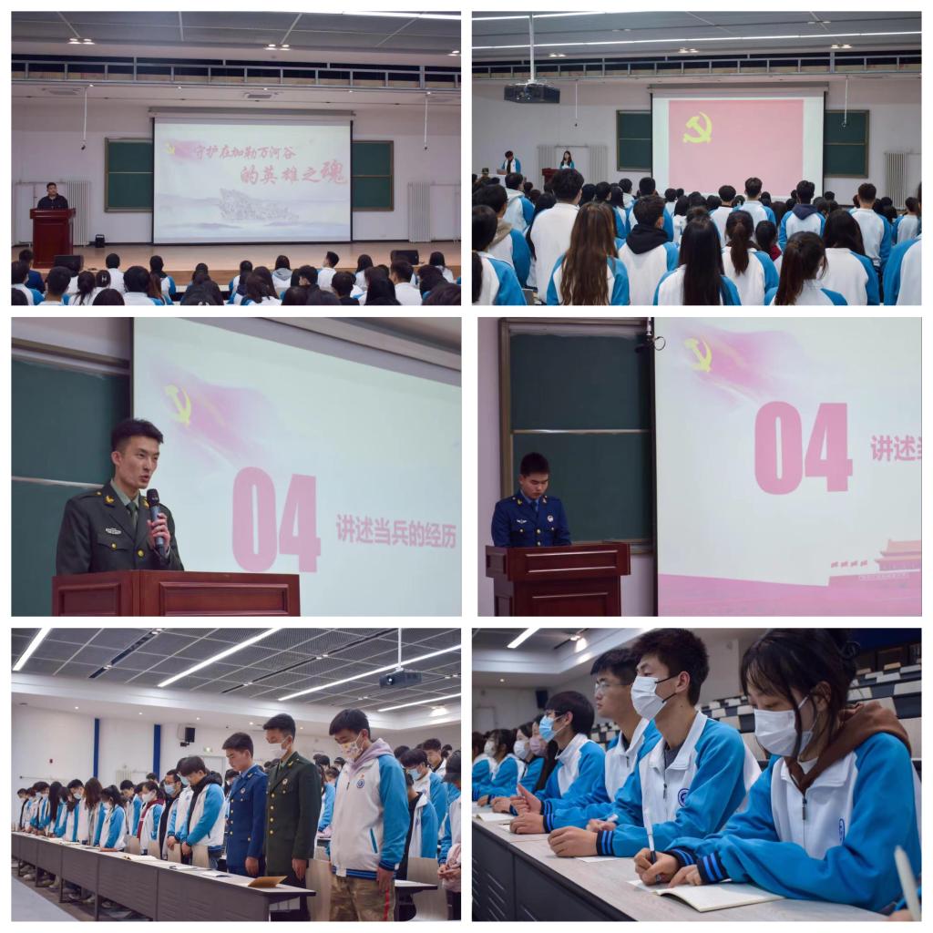 深情讲英烈,行动慰忠魂。雄壮的国歌唱毕,全体师生肃立。党员张珂等同学分别为大家讲述了加勒万河谷事件的发生过程、陈祥榕等四位英烈的感人事迹;同时,一起观看了加勒万河谷冲突现场视频。随后,全体师生默哀一分钟,向用生命捍卫和守候中国的英魂致以最深切的缅怀和最崇高的敬意,他们“清澈的爱,只为中国”的最强音值得我们永远铭记、致敬和传承。