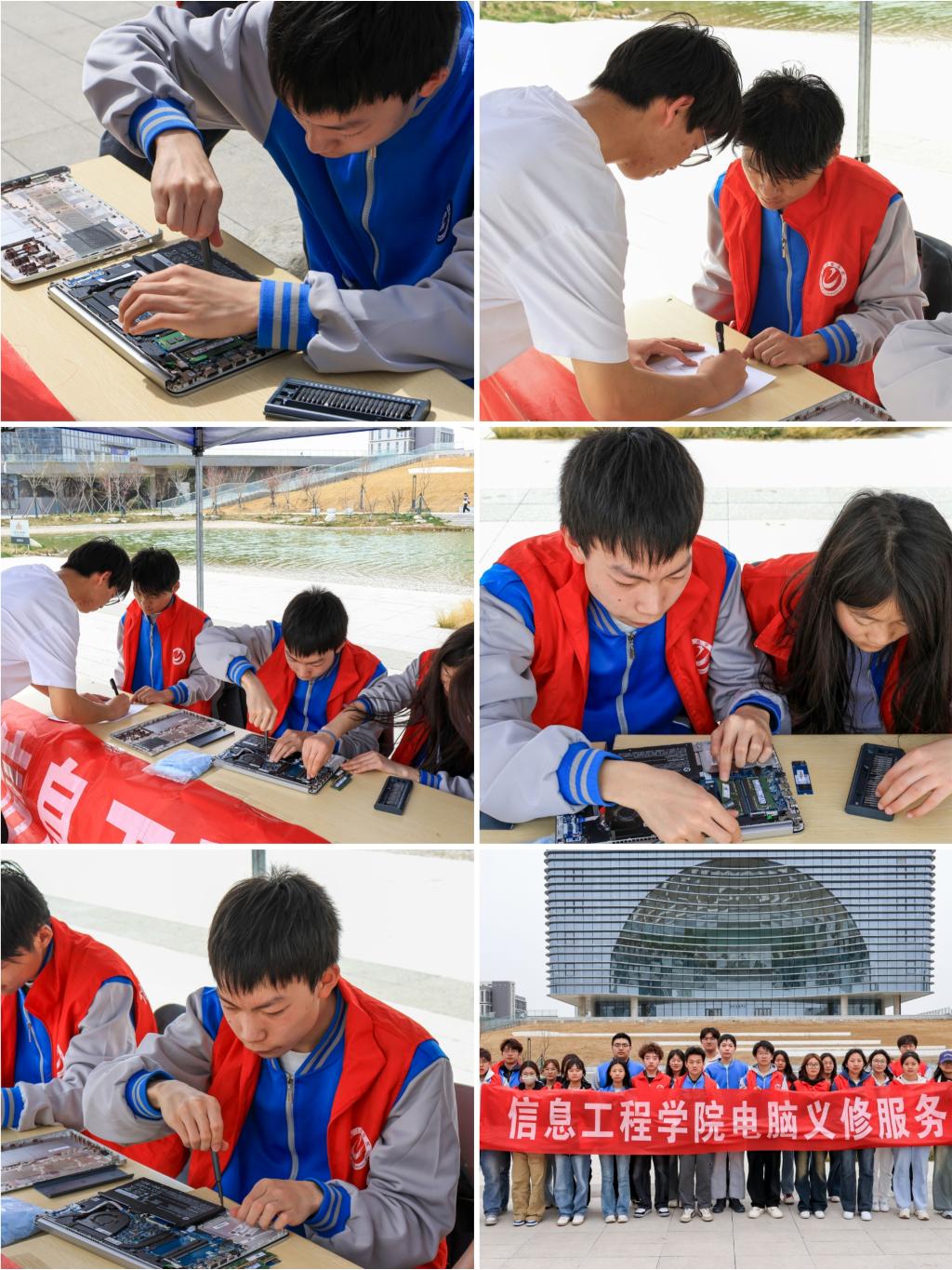 为践行志愿服务精神,切实解决同学的日常用机难题,41日至10日中午,信息学院学子在人工湖畔开展电脑义务维修活动。本次活动以“我为同学做实事”为主题,在午间黄金时段12:30-14:00为全校同学提供现场技术支持。