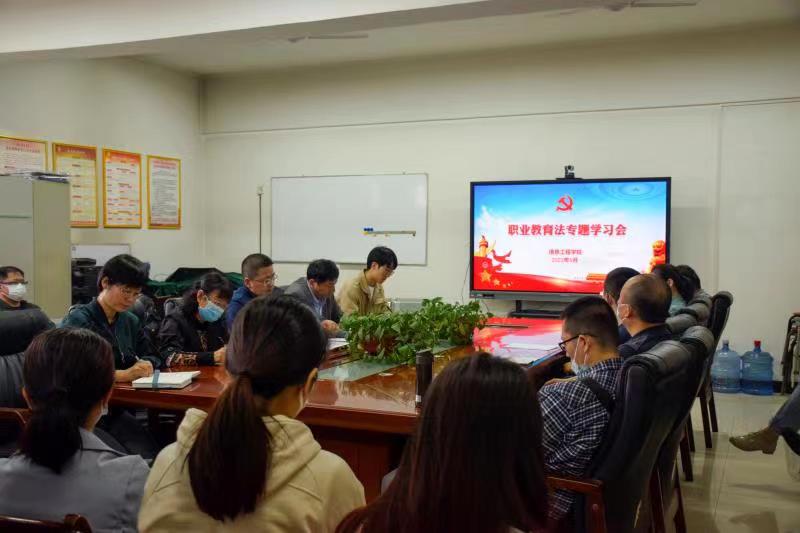会上,全体教职工通过观看视频的方式,学习了习近平总书记在中国人民大学考察时的重要讲话,要不断吸收世界上先进的办学治学经验,扎根中国大地办大学,成为“经师”和“人师”相统一的大先生。副院长白国政领学《中华人民共和国职业教育法》,通过10个关键词解析新《职业教育法》亮点,通过9处“鼓励”、23处“应当”和4处“必须”破解产教融合难题。党总支副书记郭新玲领学了习近平致首届大国工匠创新交流的贺信。闫军书记在会议最后强调:一是要认真研读新《职业教育法》,增强从事职业教育的信心;二是从法律规定着手,探索职业教育新路径;三是要树立终生从事职业教育的决心,脚踏实地、勇攀高峰。