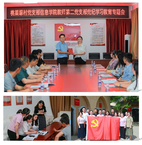 首先,支部书记李俊传达了习近平总书记关于党纪学习教育的重要讲话和重要指示精神,并代表支部向桃渠塬村党支部赠送了《中国共产党纪律处分条例》;随后双方支部委员分别领学《中国共产党纪律处分条例》第一、二章内容,桃渠塬村党支部书记王联峰讲授党课“桃渠塬的红色历史”,教师第二党支部由王蒙蒙、赵润泽两位教师分别分享“美术经典中的党史”微党课。